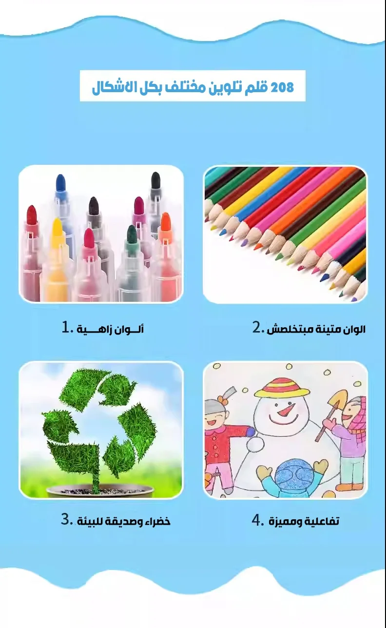 أما عن مميزات علبة الألوان ال208 قطعة